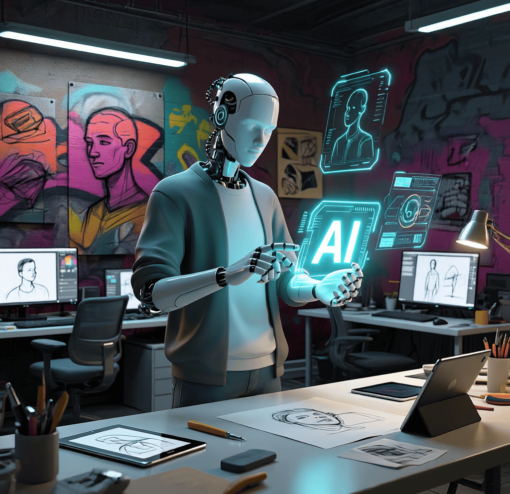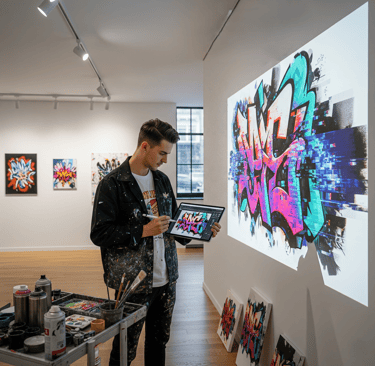 Bienvenue dans la Galerie des Talents IA, notre espace d'exposition dédié à l'art généré par intelligence artificielle. Nous sommes passionnés par le croisement du street art et de la technologie, et cette galerie met en lumière les œuvres les plus remarquables soumises par des artistes de notre communauté. Si votre création est sélectionnée, elle sera affichée dans la rubrique Galerie Street art & Graffiti pour inspirer et être admirée par tous.